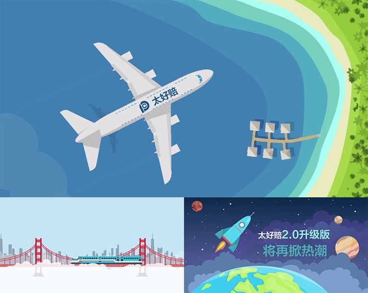 “太好賠”的核心理念之一是“極速”,故選取飛機(jī)、地鐵、火箭等象征速度的動(dòng)畫元素來具象展現(xiàn)“極速”理念。